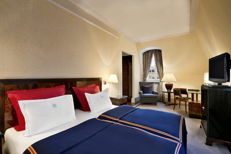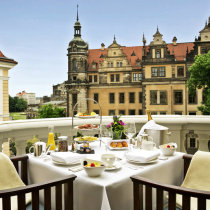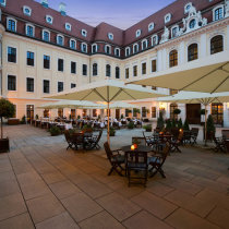 eine Deckenhöhe von bis 4,80m. Die Deluxe-Zimmer bieten eine ruhige Lage zum barocken Innenhof oder zur Semperoper, dem Zwinger bzw. dem Residenzschloß. Aufpreis meist zwischen €20,- bis 30,- je Nacht bitte erfragen.