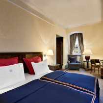 Alternativ können Sie hier auch größere Palais Superior-Zimmer buchen, diese Zimmer bieten Ihnen noch mehr Komfort und bieten eine ruhige Lage zum barocken Innenhof oder auf die malerische Seitenstraße. Aufpreis zwischen €10,- bis 15,- bitte erfragen.